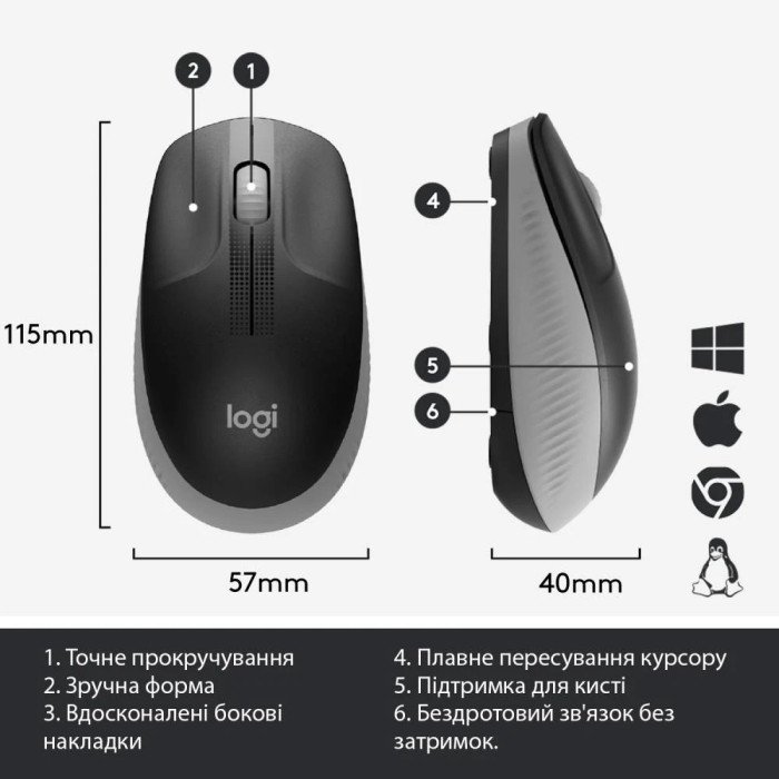 Миша бездротова Logitech M190 Wireless Mid Grey (910-005906)