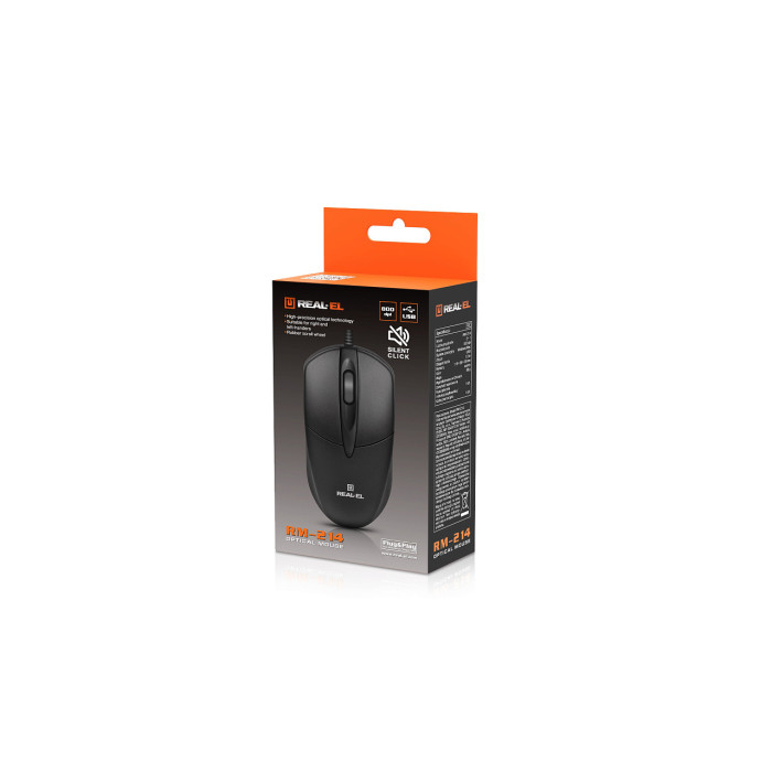 Провідна оптична миша REAL-EL RM-214 - ідеальне рішення для роботи й навчання. Високоточна оптична технологія надає маніпулятору RM-214 можливість працювати практично на будь-якій поверхні. Безшумні кнопки забезпечують к... Читати далі...