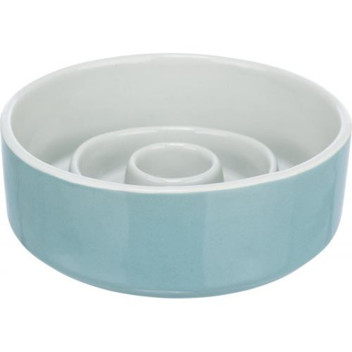 Миска Trixie Повільне годування для собак, кераміка, 17 см, 900 мл (сіра/блакитна)
