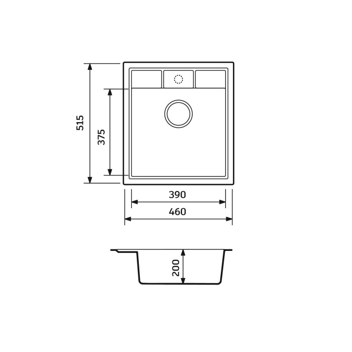 Мийка кухонна Adamant Brick, штучний камінь, квадрат, без крила, 460x515x200мм, чаша - 1, врізна, Avena