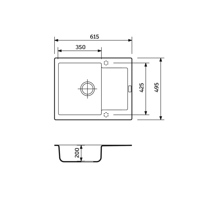 Мийка кухонна Adamant Minimal, штучний камінь, прямокут., з крилом, 615х495х200мм, чаша - 1, врізна, Avena