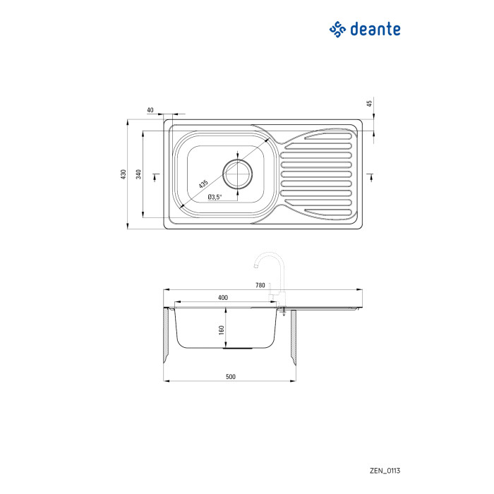 Мийка кухонна Deante Doppio, нерж.сталь, прямокут., з крилом, 780х430х160мм, чаша - 1, накладна, нерж