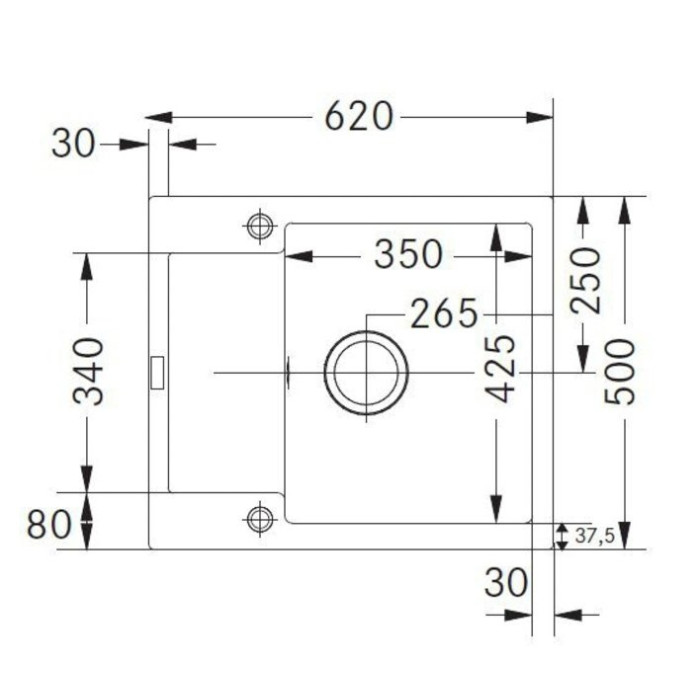 Мийка кухонна Franke Maris, фраграніт, прямокутник, з крилом, 620х500х200мм, чаша - 1, врізна, MRG 611-62, сахара