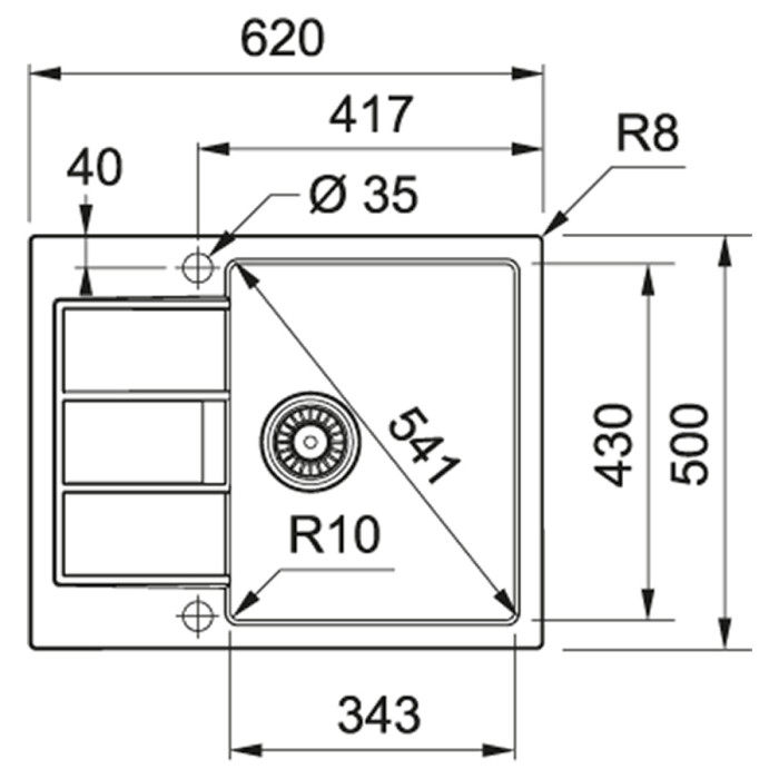 Мийка кухонна Franke Sirius, тектонайт, прямокутник, з крилом, 620х500х200мм, чаша - 1, накладна, S2D 611-62, білий