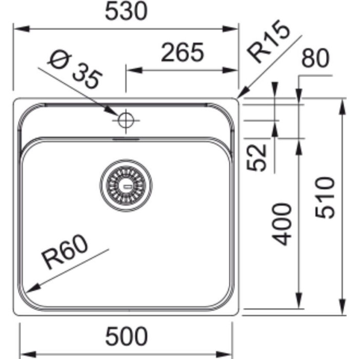 Мийка кухонна Franke Smart, нерж.сталь, прямокутник, без крила, 500х400мм, чаша - 1, монтаж врівень, SRX 210-50 TL, нерж поліров.