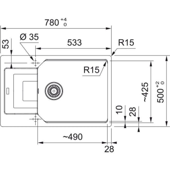 Кухонна мийка виготовлена з Фраграніту - міцного та стійкого до механічних впливів матеріалу. Додатково Фраграніт має антибактеріальний захист завдяки швейцарській технології Sanitized. Мийка комплектується ручним вентилем, та сифоном. Мийка призначена для верхнього врізного монтажу у стільницю.