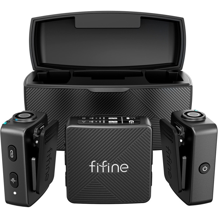 Зручний зарядний кейс спрощує процес зарядки і зберігання мікрофонів, завжди забезпечуючи їх готовність до роботи в будь-який момент. Fifine M9 ідеально підходить для мобільних записів, стрімінгу та інтерв’ю, де якість звуку має найвищий пріоритет. З ним ви завжди зможете створювати контент на професійному рівні без обмежень.