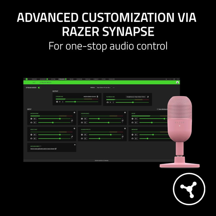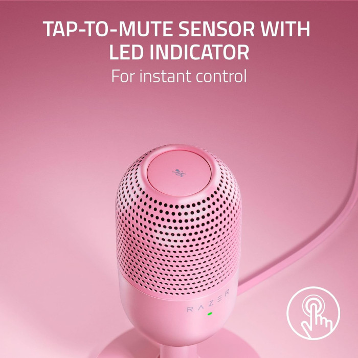 Зустрічайте Razer Seiren V3 Mini - надкомпактний USB-мікрофон, який тепер став ще функціональнішим. Насолоджуйтесь записом голосу студійної якості з ідеальним невеликим компаньйоном для ігор, потокового мовлення та спілкування, оснащеного новою функцією вимкнення звуку та розширеними можливостями його налаштування.
