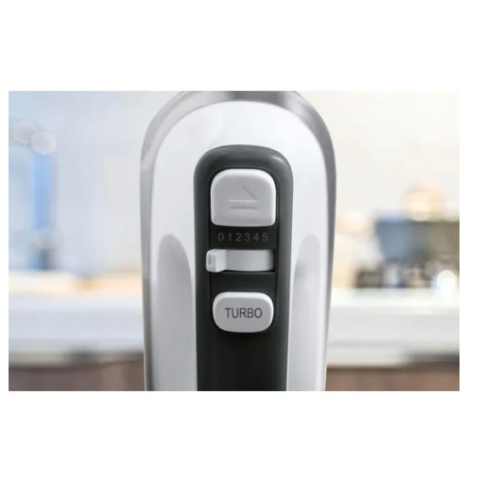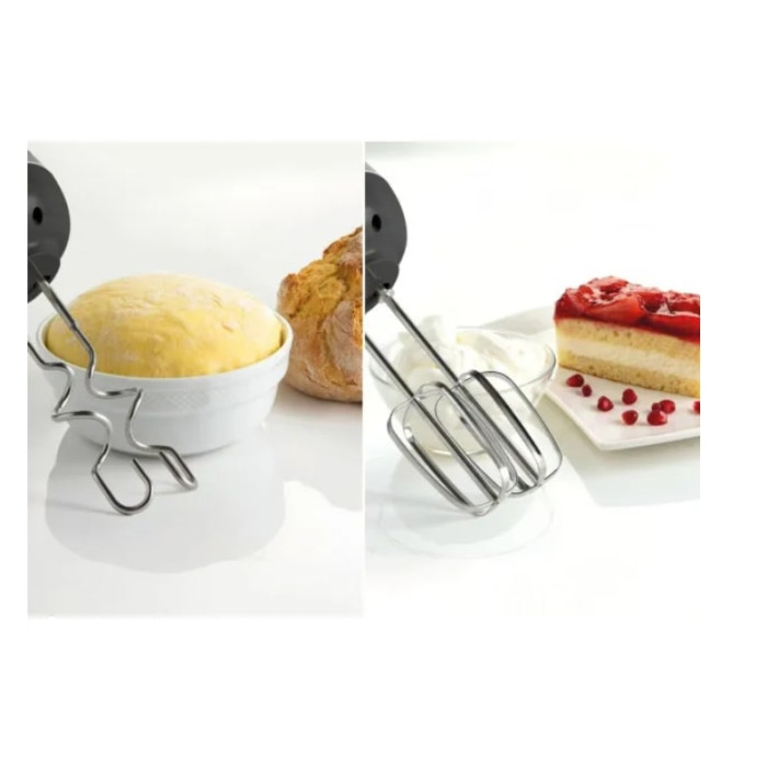 У комплекті з ручним міксером поставляються спеціально розроблені скарбнички і гачки для тіста з нержавіючої сталі. Ідеально підходить для приготування печива, хліба або збитих вершків.