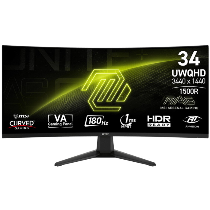 MSI MAG 346CQ — вигнутий 34-дюймовий монітор з роздільною здатністю 3440x1440 і співвідношенням сторін 21:9 для повного занурення в ігри чи роботу. Частота оновлення 180 Гц і час відгуку 1 мс забезпечують надзвичайну пла... Читати далі...