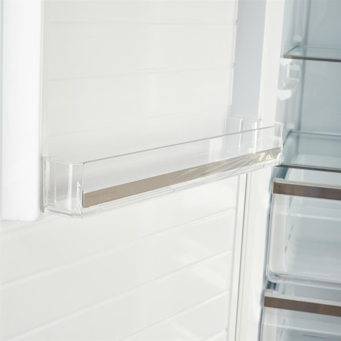 Вузька морозильна камера має ширину усього лише 595 мм, що не впливає на її високу місткість. Завдяки висоті в 1850 мм та глибині 618 мм загальний об’єм камери складає цілих 273 літри. Дизайнери зробили акцент на класичному білому кольорі фасаду, що не вимагає складних рішень в інтер’єрі. Дверцята мають лаконічну ручку, що виступає та інтуїтивно зрозумілий дисплей. Він призначений для управління режимами роботи пристрою.