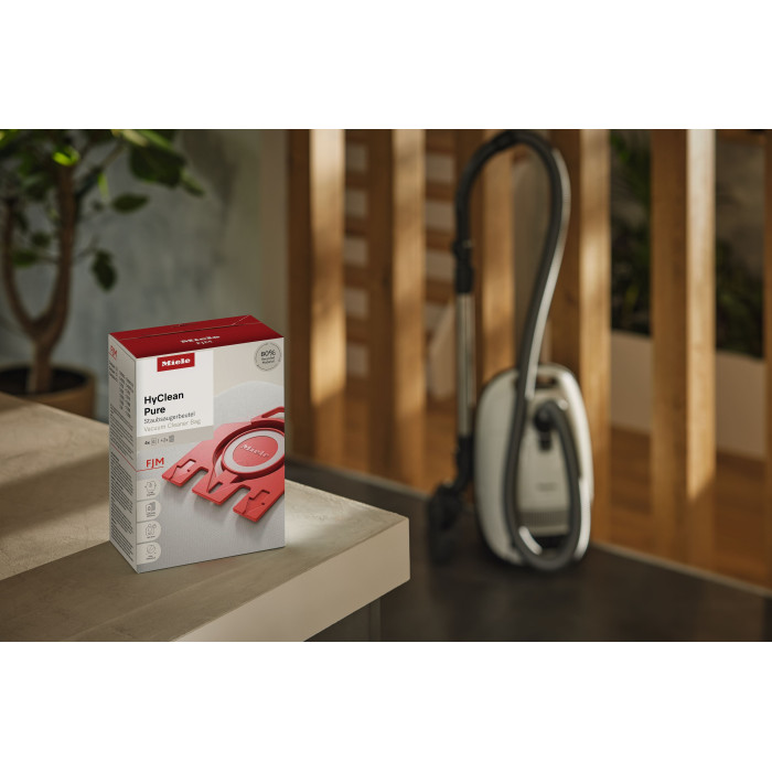 Мішки для пилососів Miele HyClean Pure FJM (41996721INT) – це оригінальні пилозбірники об’ємом 3.5 л, призначені для моделей Miele Complete C1, Compact C1, Compact C2, S6, S4. У комплекті 4 мішки, 1 моторний фільтр і 1 випускний фільтр. Виготовлені з 80% перероблених матеріалів, вони забезпечують фільтрацію 99.99% дрібного пилу завдяки системі AirClean. Оснащені автоматичним закриттям і 3D-технологією для максимальної ефективності та тривалого терміну служби (до 3 місяців).
