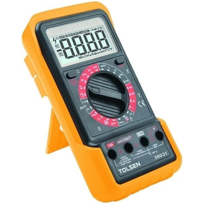 Компактний та легкий мультиметр Tolsen 38031 забезпечує точні електричні вимірювання та зручність у використанні завдяки великому РК-дисплею та додатковим функціям, таким як утримання даних та автоматичне вимкнення.