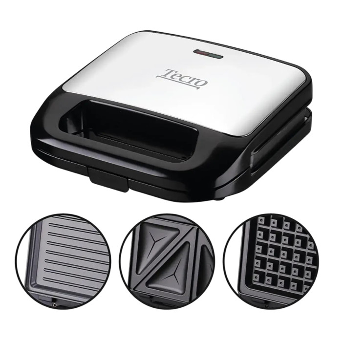 Мультимейкер 3 в 1 – універсальний пристрій для приготування гриль-страв, вафель та сендвічів. Завдяки змінним антипригарним пластинам ви зможете легко експериментувати з різними рецептами. Компактний дизайн та можливість вертикального зберігання дозволяють економити місце на кухні. Теплоізольована ручка, кришка із замком і нековзні ніжки забезпечують комфорт і безпеку під час використання. Стильне поєднання нержавіючої сталі та пластику додає пристрою сучасного вигляду, роблячи його практичним і елегантним доповненням до будь-якої кухні.