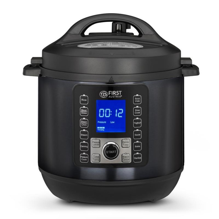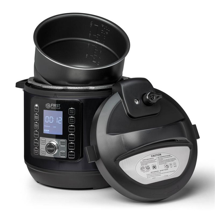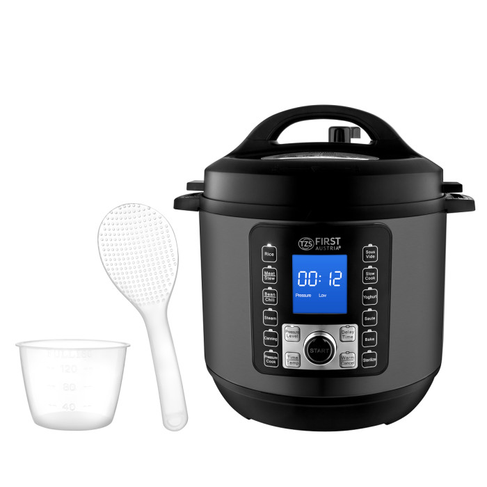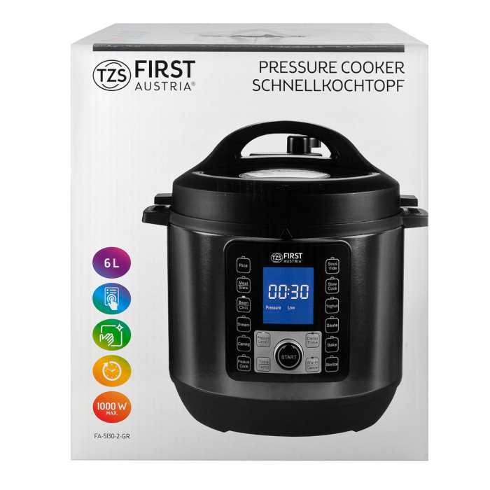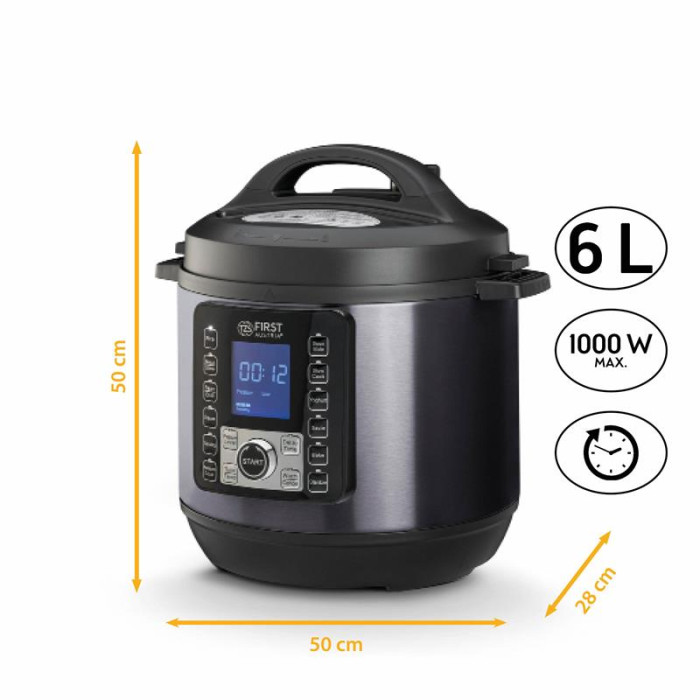 Мультиварка-скороварка First Austria FA-5130-2 являє собою високоякісний пристрій, який забезпечує зручність та багатофункціональність у приготуванні їжі. З потужністю 1000 Вт вона готує страви швидко та ефективно, скорочуючи час приготування. З ємністю 6 літрів ця мультиварка-скороварка ідеально підходить для приготування великих порцій їжі, що особливо зручно для сімейних вечерь та прийомів гостей. Кількість програм становить 12, що дозволяє вибрати оптимальний режим приготування різних видів страв.