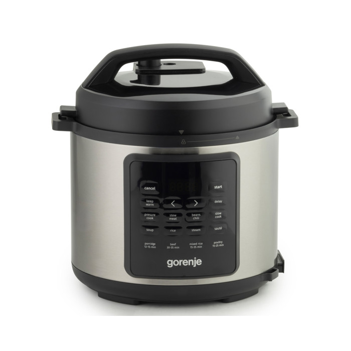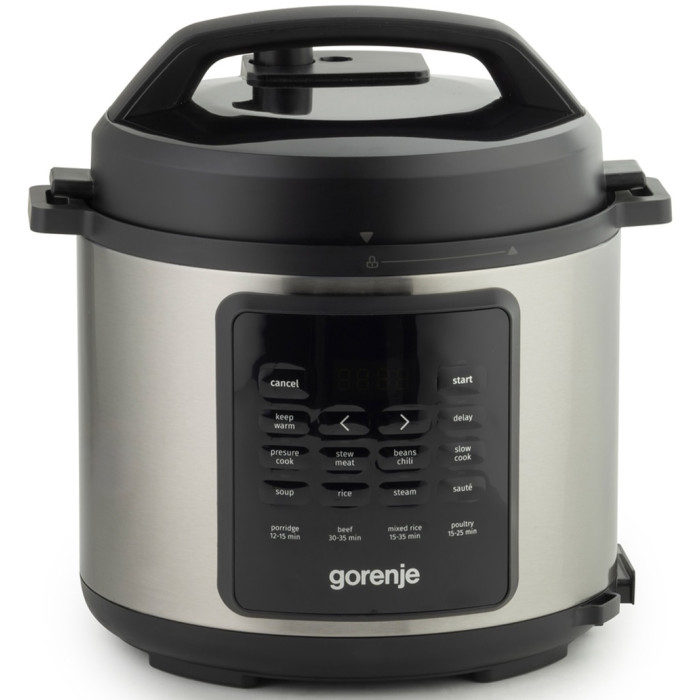 Мультиварка-скороварка Gorenje, 1000Вт, чаша-6л, електронне керув., 8 програм, метал/пластик, чорний-нерж