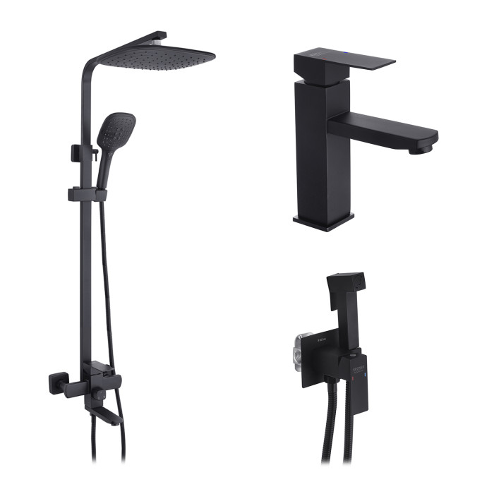 Набор 3 в 1 душова система Kroner Edelstahl Kubus-SCH063 + змішувач Edelstahl Kubus-SCH010 + змішувач Edelstahl Kubus-SCH053