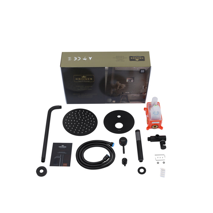 Набор 3 в 1 душова система прихованого монтажу Kroner Edelstahl Klassisch-SCH082 + змішувач Edelstahl Klassisch-SCH010 + трап лінійний Harz SCH60 Sektion Schwarz