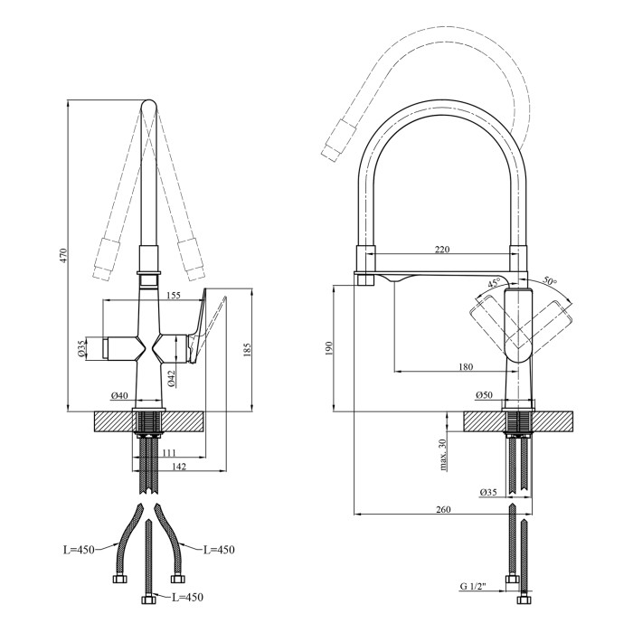 Змішувач, гнучка підводка, кріплення, інструкція