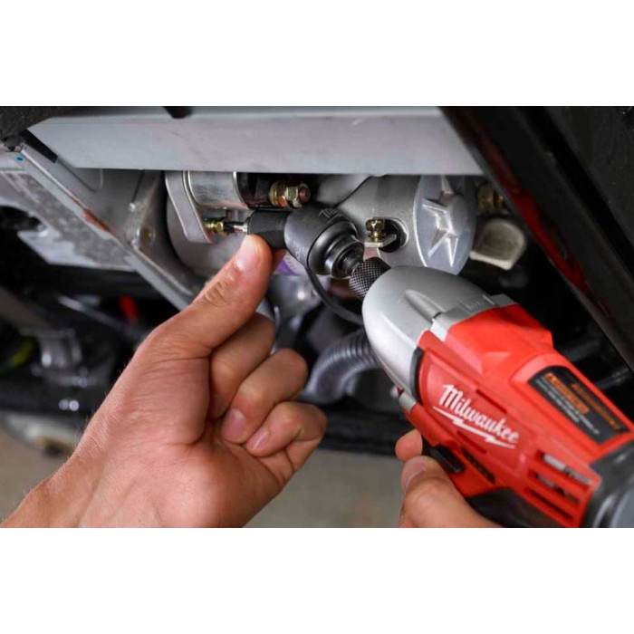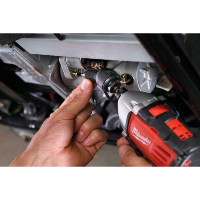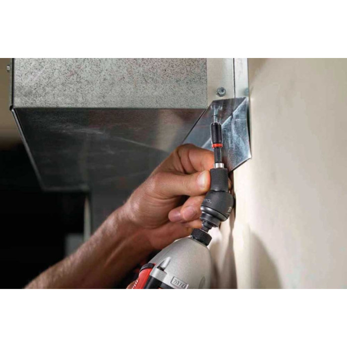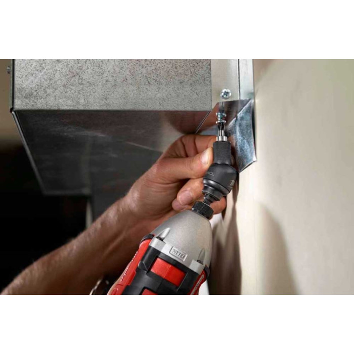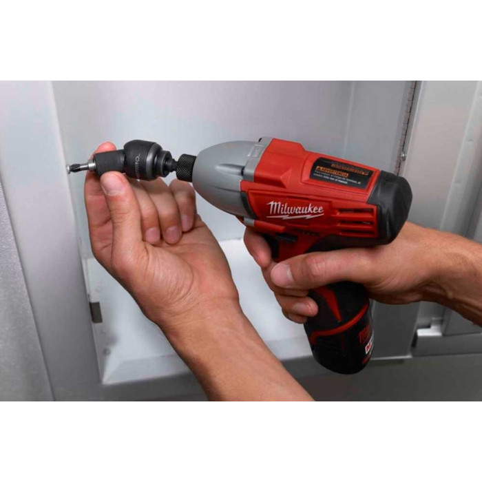 Набір біт Milwaukee Shockwave з насадкою Knuckle 1/4" 10 шт. (4932459781) — ударостійкий комплект для важкодоступних місць з поворотною насадкою, що дозволяє працювати під кутом до 30°. Включає 9 біт стандартної довжини 25 мм (PH2, PZ2, TX20, TX25, TX30) та магнітний тримач. Технологія Shockzone поглинає пікові навантаження, Wear Guard Tip захищає від зносу та вислизання. Сталь S2 з термічною обробкою забезпечує до 50× довший ресурс. Вага набору 0,25 кг, поставляється в пластиковому кейсі.