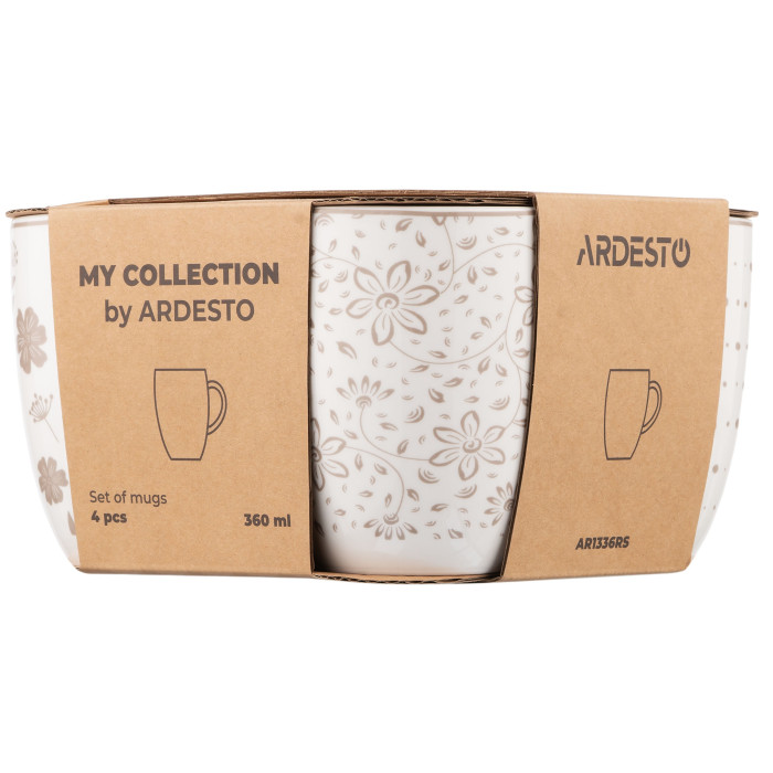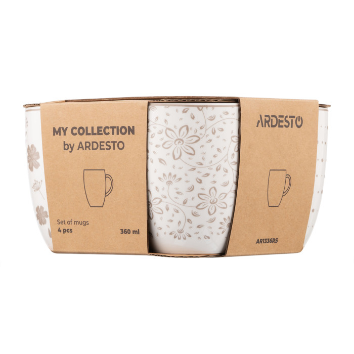 Набір чашок ARDESTO Ravenna, 4шт., 360мл, порцеляна, біло-бежевий