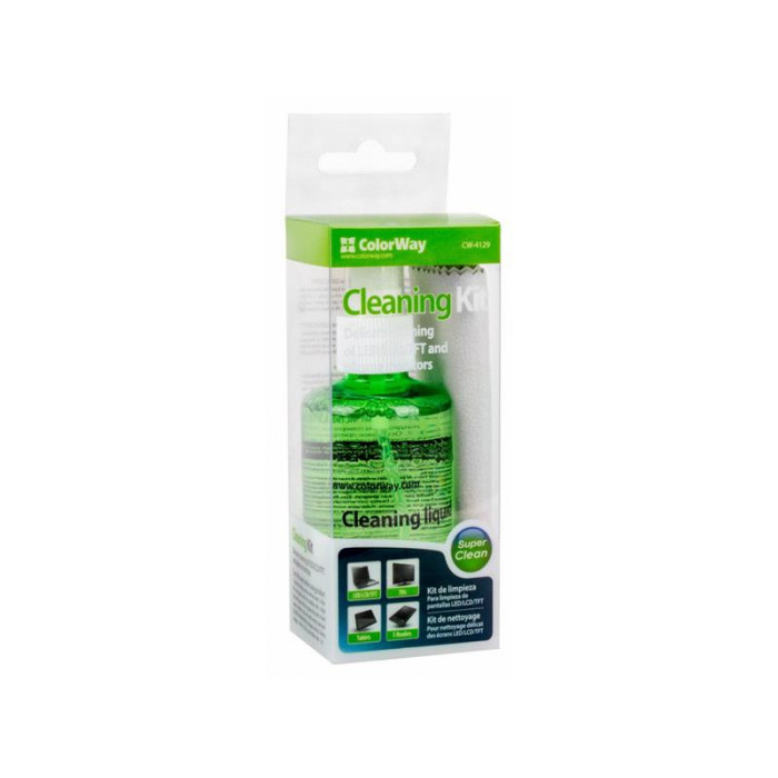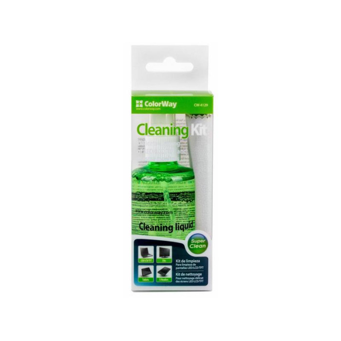 Набір для чищення ColorWay для делікатного очищення моніторів, екранів, телевізорів, портативних пристроїв і персональної електроніки. Містить спрей з антистатичною добавкою. Безворсова серветка не залишає розведень і добре очищає поверхню екрана від пилу і забруднень. Обсяг рідини розрахований на довгий час застосування при помірному використанні.