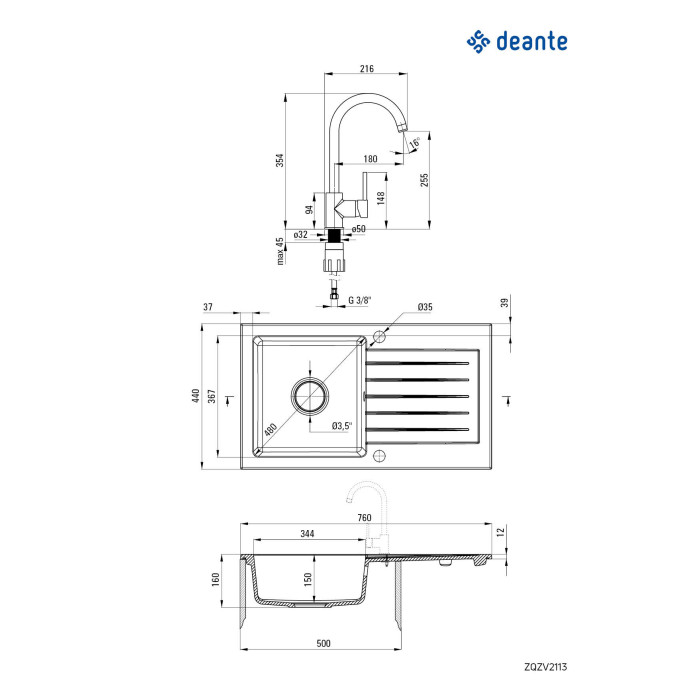 Набір для кухні Deante Zorba, гранітна мийка ZQZ_2113 + зміш. BEN_262M, графіт-хром