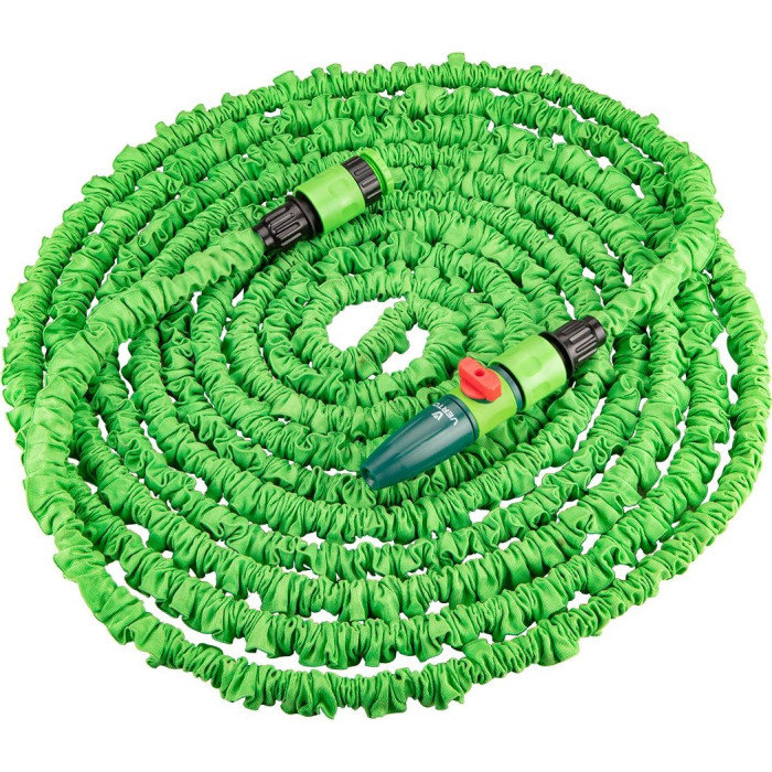 Набір для поливу Verto, в комплекті шланг 7.5-22м, що розтягується, зрошувач прямий 15G700, конектор, 2 муфти