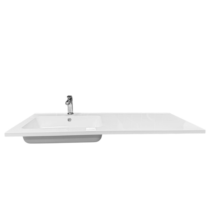 Набір для ванної кімнати Adamant FLATE 120L включає раковину зі штучного каменю, змішувач та сифон Click-Clack. Раковина прямокутної форми з чашею ліворуч та крилом праворуч має розміри 119,8 х 47,8 х 14 см, білий колір та отвір для переливу. Одноважільний змішувач оснащений аератором, металевим важелем та стаціонарним виливом з хромовим покриттям. Пластиковий сифон забезпечує мокрий гідрозатвор, автоматичне відкриття зливу та функцію переливу.