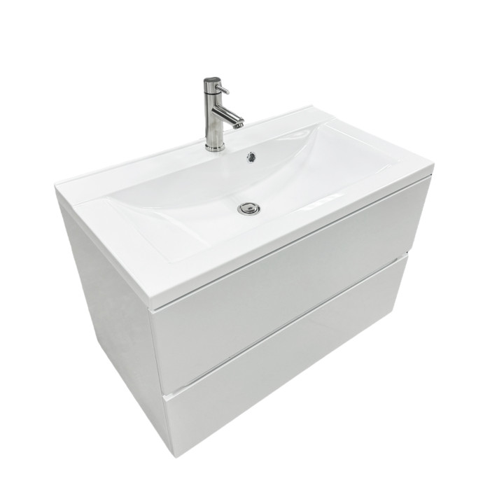 Набір для ванної кімнати, раковина, умивальник Adamant QUANTO 80, штучний камінь, прямокут., з сифоном Click-Clack + змішувач