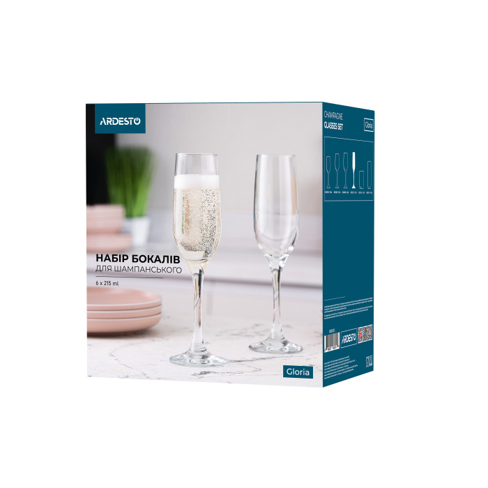 Набір келихів для шампанського Ardesto Gloria, 215мл, 6шт, скло, прозорий