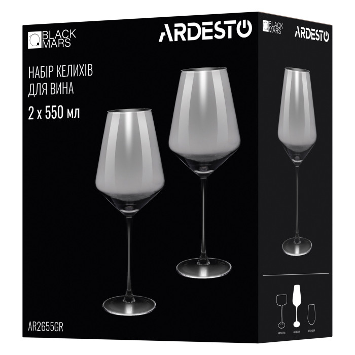 Набір келихів для вина ARDESTO Black Mars Avior 550мл, 2шт, скло, сіро-прозорий