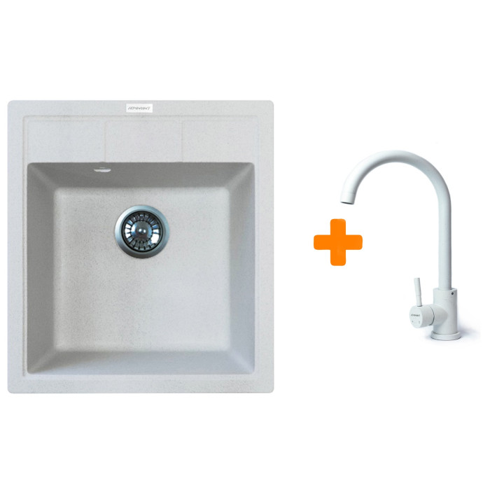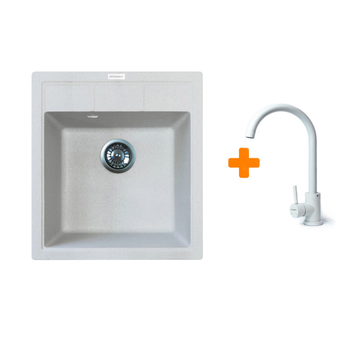 Набір Adamant Brick поєднує практичну кухонну мийку зі штучного каменю та функціональний змішувач зі зручною висотою виливу. Мийка з квадратною формою та глибокою чашею підходить для щоденного використання, забезпечуючи ... Читати далі...