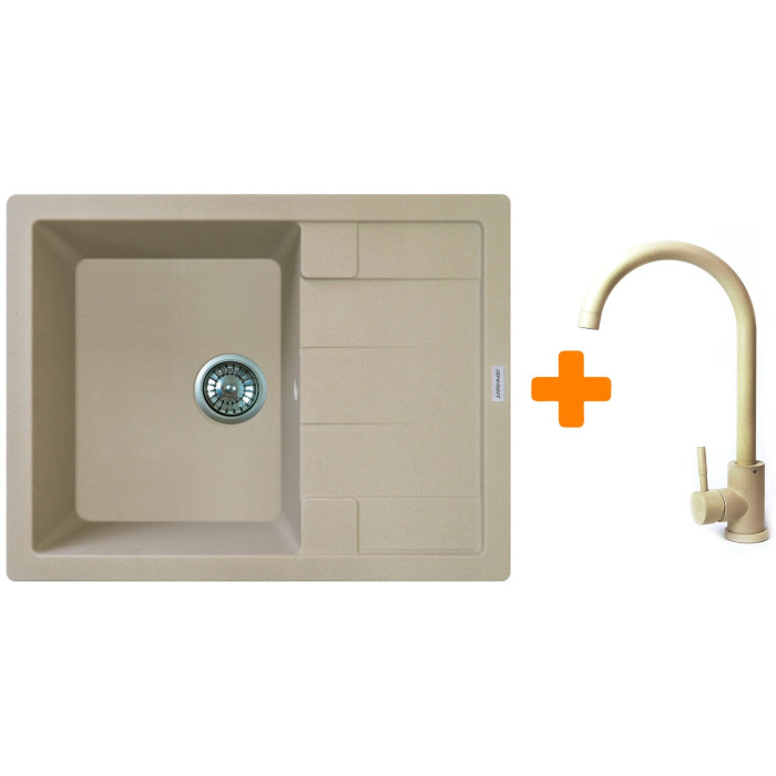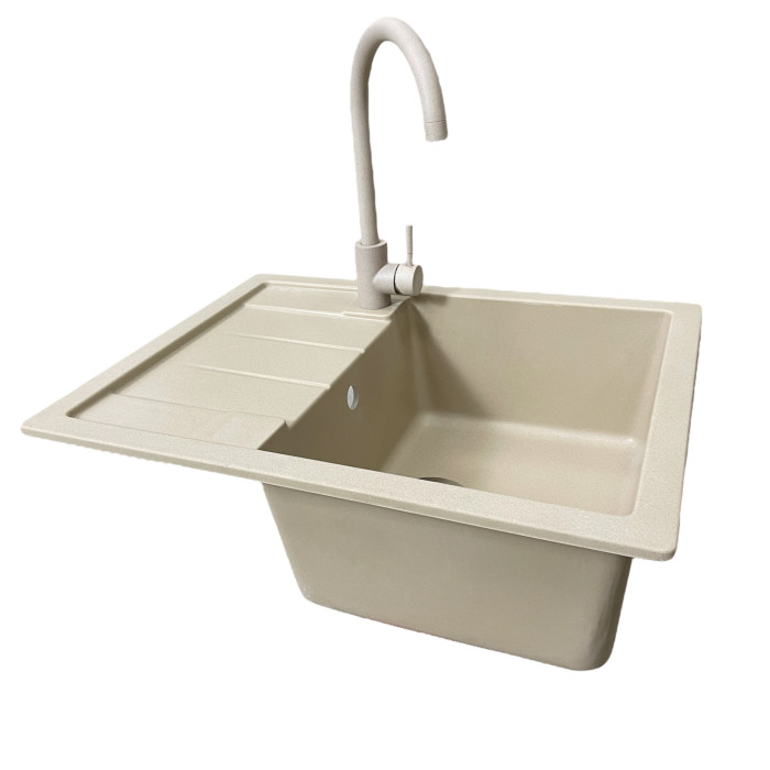 Набір кухонний Adamant Anila, штучний камінь, прямокут., з крилом, 645х495х200мм, чаша - 1, врізна, Сахара + змішувач