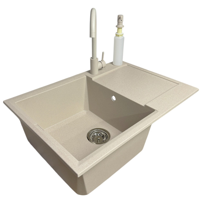 Набір кухонний Adamant Horizon Medium, штучний камінь, прямокут., з крилом, 700х500х230мм, чаша - 1, врізна, Avena + змішувач та дозатор