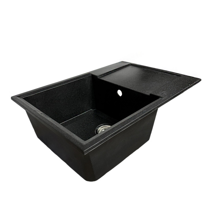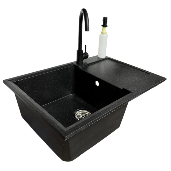 Набір кухонний Adamant Horizon Medium, штучний камінь, прямокут., з крилом, 700х500х230мм, чаша - 1, врізна, чорний + змішувач та дозатор
