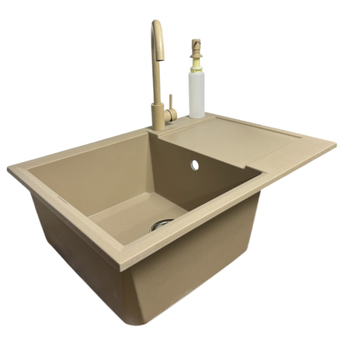 Набір кухонний Adamant Horizon Medium, штучний камінь, прямокут., з крилом, 700х500х230мм, чаша - 1, врізна, Сахара + змішувач та дозатор
