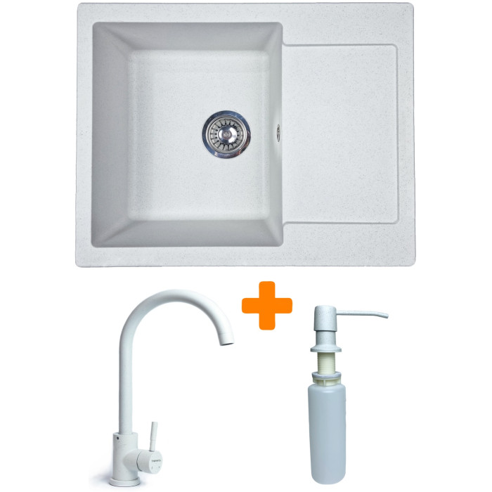 Набір кухонний Adamant Minimal, штучний камінь, прямокут., з крилом, 615х495х200мм, чаша - 1, врізна, Old stone + змішувач та дозатор