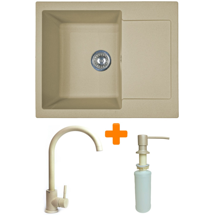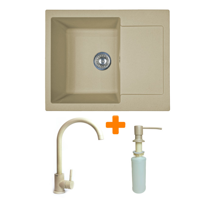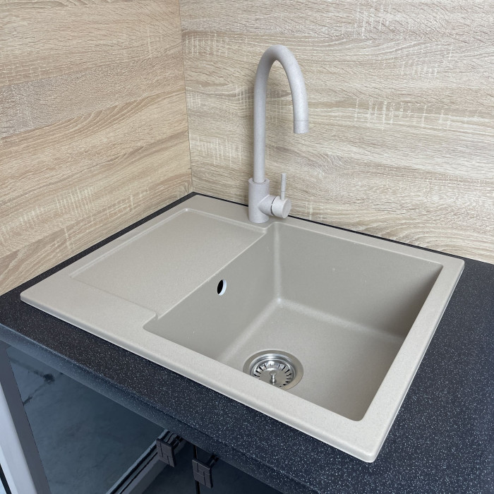 Набір кухонний Adamant Minimal, штучний камінь, прямокут., з крилом, 615х495х200мм, чаша - 1, врізна, Сахара + змішувач та дозатор