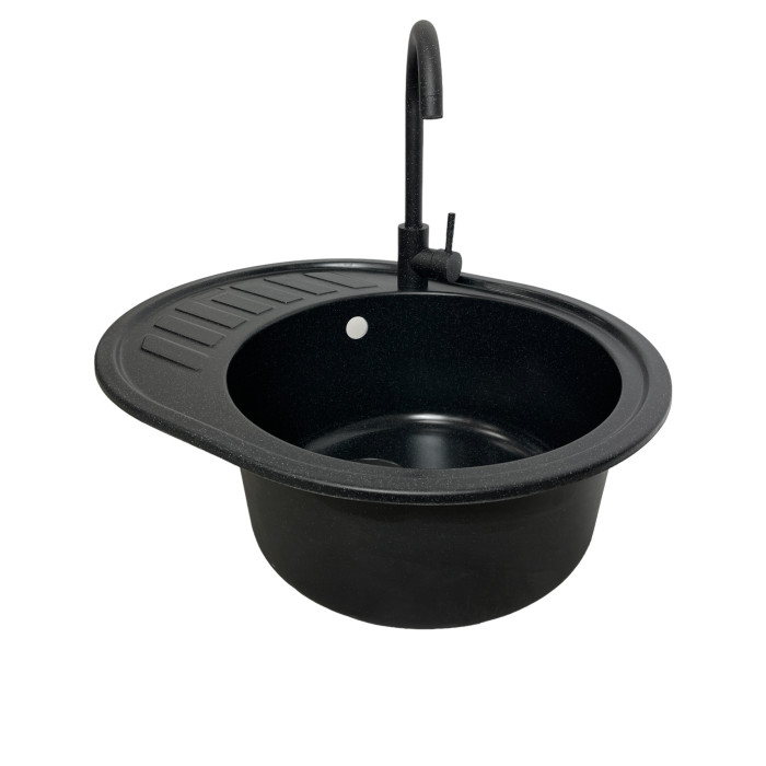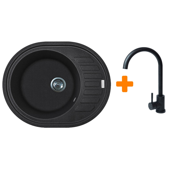Набір кухонний Adamant Ovum, штучний камінь, овальна, з крилом, 615х495х200мм, чаша - 1, врізна, чорний + змішувач