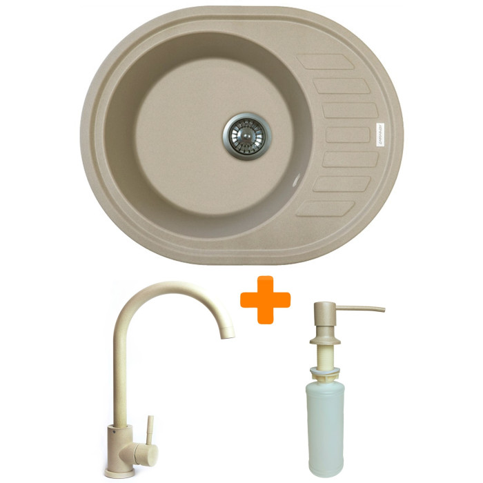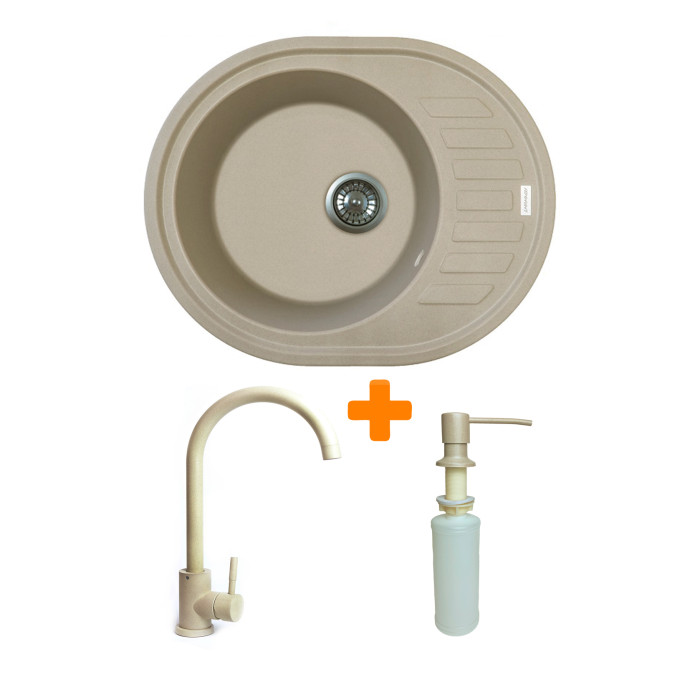 Набір кухонний Adamant Ovum, штучний камінь, овальна, з крилом, 615х495х200мм, чаша - 1, врізна, Сахара + змішувач та дозатор