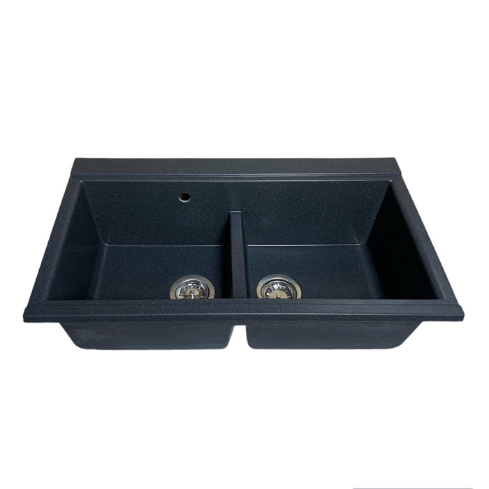Набір кухонний Adamant Similar, штучний камінь, прямокут., без крила, 885x505x230мм, чаша - 2, врізна, графіт + змішувач + дозатор + ополіскувач склянок + коландер