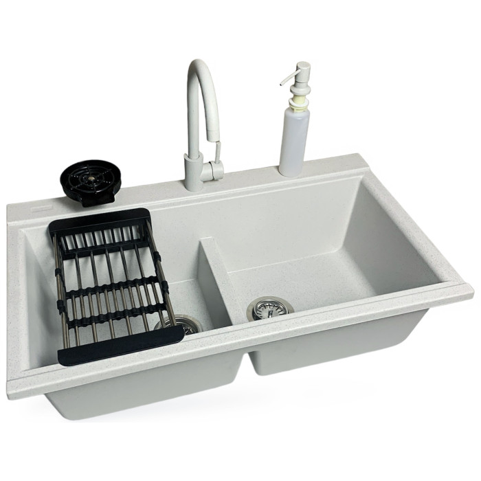Набір кухонний Adamant Similar, штучний камінь, прямокут., без крила, 885x505x230мм, чаша - 2, врізна, Old stone + змішувач + дозатор + ополіскувач склянок + коландер