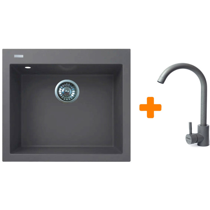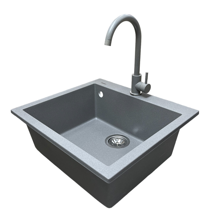 Набір кухонний Adamant Univer, штучний камінь, квадрат, без крила, 560х500х200мм, чаша - 1, врізна, сірий + змішувач