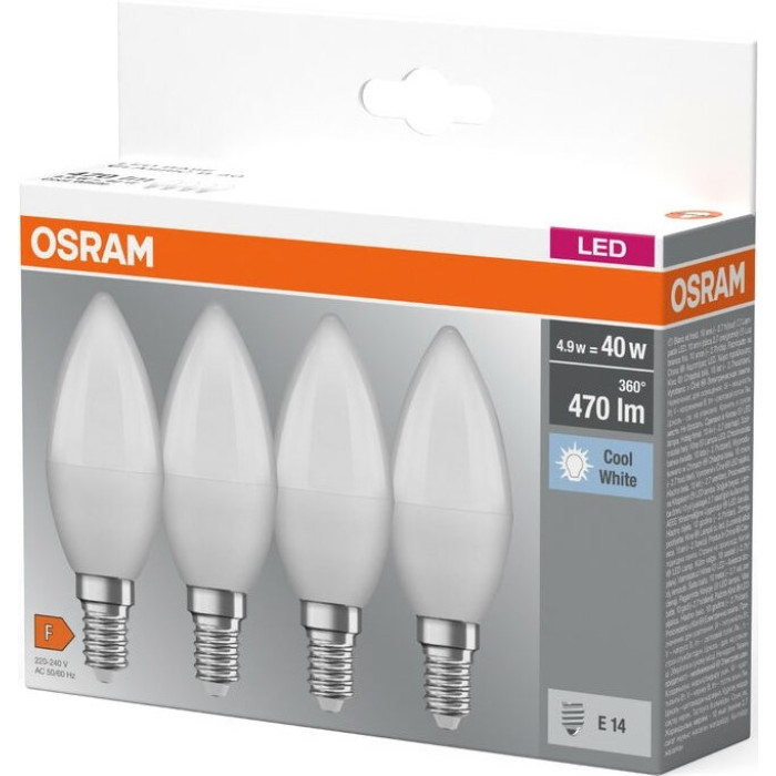 Набір ламп 4шт OSRAM LED E14 4.9Вт 4000К 470Лм B40
