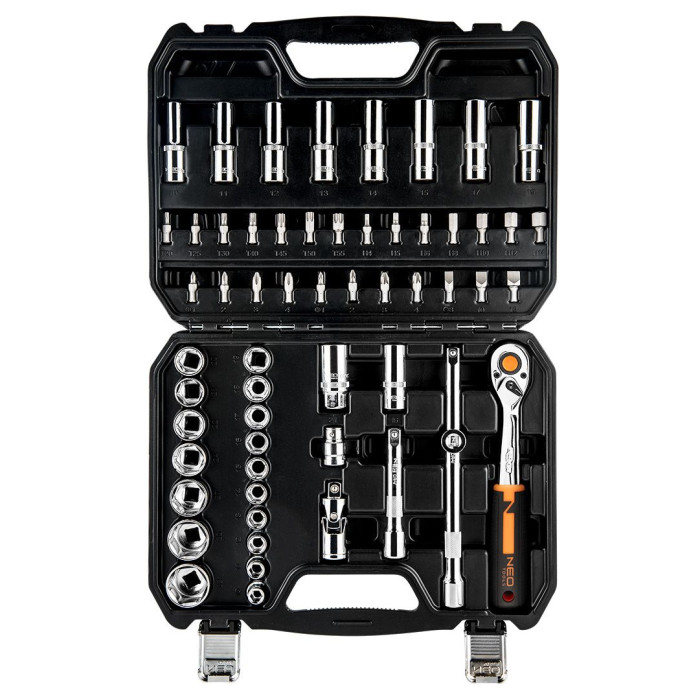 Набір інструментів Neo Tools, набір торцевих головок, 1/2", CrV, кейс, 58шт