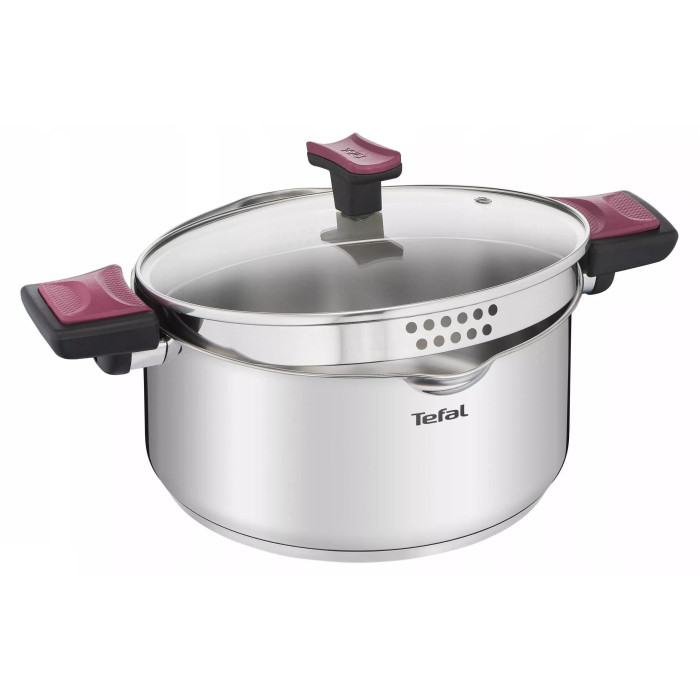 З новаторськими каструлями з набору посуду Tefal Cook & Clip приготування їжі стає простим і безпечним! Геніальна система easy-lock фіксує на місці спеціально розроблену кришку з отворами для зливу, позбавляючи вас необхідності використовувати друшляк і прихватки. Завдяки цій системі забезпечується продумане, безпечне і легке проціджування всього, від макаронів і рису до картоплі та овочів. Заощаджуйте час та сили на кухні, готуючи смачні та ароматні страви для всієї родини!