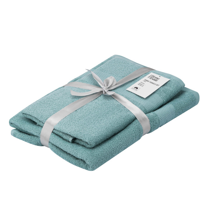 Набір рушників махрових ARDESTO Essence 50х90см, 70х140см, 2шт, 100% бавовна, аква
