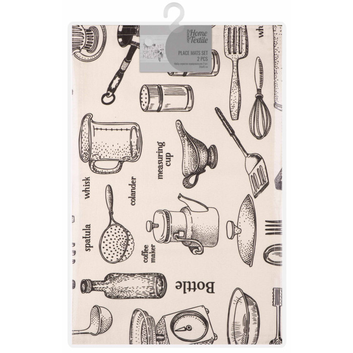 Сервірувальна серветка – це не лише засіб для збереження чистоти, але й елемент декору, який допоможе створити особливу атмосферу на столі. Розмір виробів у дизайні Kitchen становить 30 × 45 см. Набір містить 2 серветки. Виготовлено серветки з поліестеру (90 %) і бавовни (10 %), забезпечуючи тривалий термін слугування. Збереження властивостей виробів гарантує дотримання таких правил догляду: прання в пральній машині за 30 °C на делікатному режимі; сушіння в машині за низької температури; заборона відбілювання; заборона чищення будь-яким розчинником, крім трихлоретилену; прасування за температури до 110 °C.