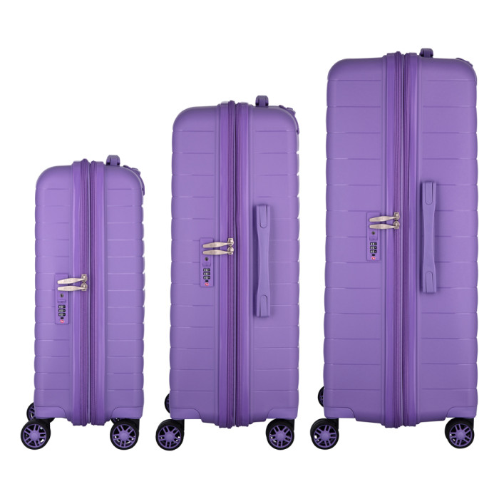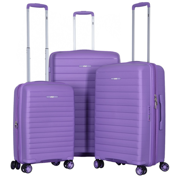 Набір валіз 2E, Aero, поліпропілен, (L+M+S), TSA, 4 колеса, EXP, лавандовий